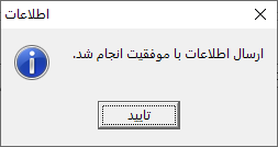 با انتخاب دکمه "ارسال نهایی" بعد از انجام پردازش، پیغام "ارسال اطلاعات با موفقیت انجام شد" نمایش داده میشود و همچنین یک فایل فشرده در مسیر تعریف شده ایجاد میشود.