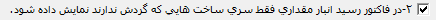 5- ردیف فاکتور دارای سریساخت قابل اصلاح نباشد: در صورت فعال بودن این پارامتر ردیف فاکتورهایی که برای آنها سریساخت در نظر گرفته شده است، غیر قابل ویرایش میشوند.