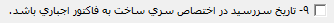 9- تاریخ سررسید در اختصاص سری ساخت به فاکتور اجباری باشد: در صورت فعال بودن این پارامتر در هنگام اختصاص سریساخت به فاکتور، تعیین تاریخ سررسید اجباری است.
