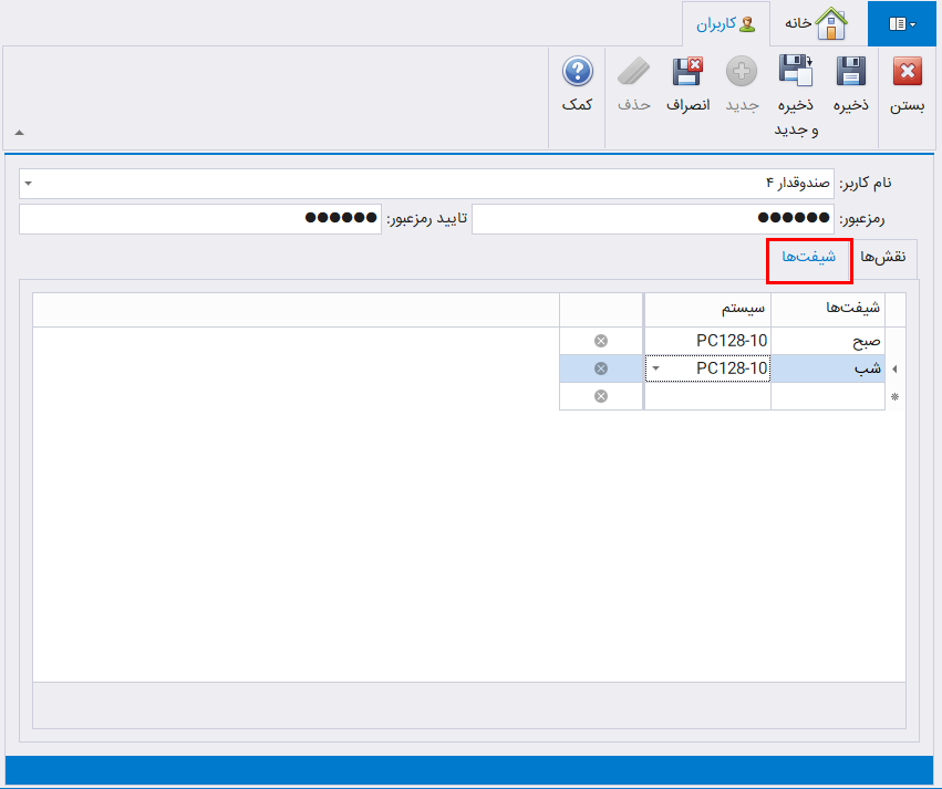 مدیریت شیفت و کاربران