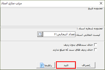 بعد انجام تنظیمات برای مرتب سازی اسناد بر روی دکمه تایید کلیک کنید.