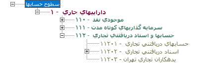 بعد از معرفی حساب معین تهران، حساب معین تعریف شده در نمودار سطحی حسابها به صورت زیر ایجاد میشود.