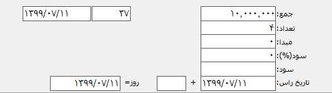 در مرحله بعد مبالغ به دست آمده را با هم جمع می‌کنیم و حاصل جمع را بر مجموع مبالغ چک‌ها تقسیم می‌کنیم.