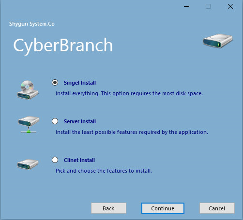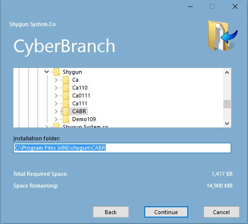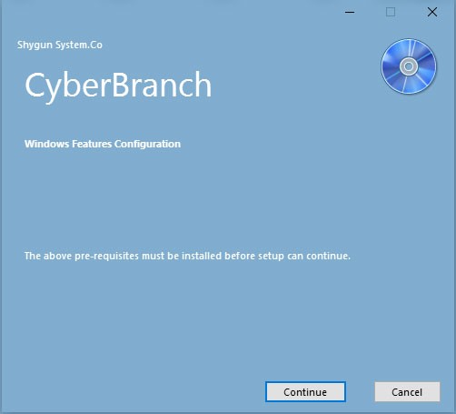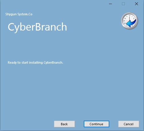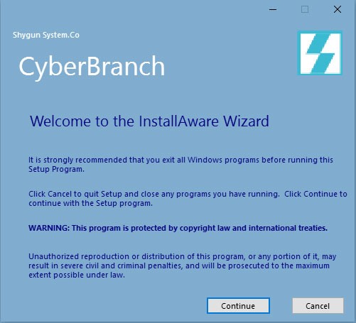 در فولدر DVD برنامه فایل cyberbranch.exe را اجرا کنید. در فرم بازشده بر روی دکمه Continue کلیک کنید.
