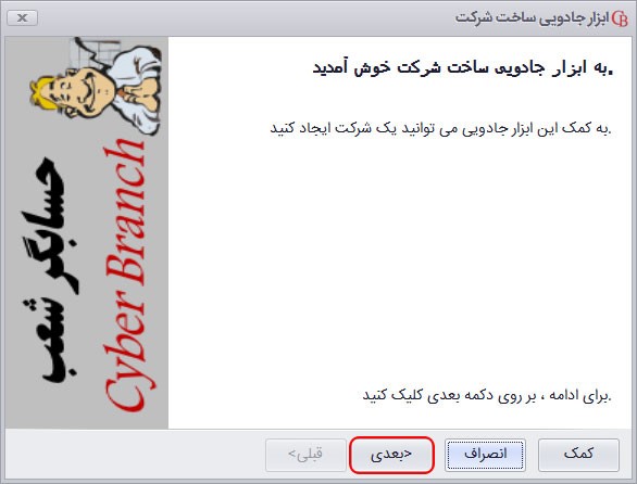 برای شروع کار با برنامه حسابگر شعب ابتدا باید یک شرکت ایجاد کنید. برای ساخت شرکت جدید برنامه را اجرا کنید سپس بر روی دکمه «ایجاد شرکت» کلیک کنید.