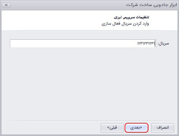 در مرحله بعد سریال شعبه که از شرکت شایگان سیستم دریافت نمودهاید را وارد کنید.