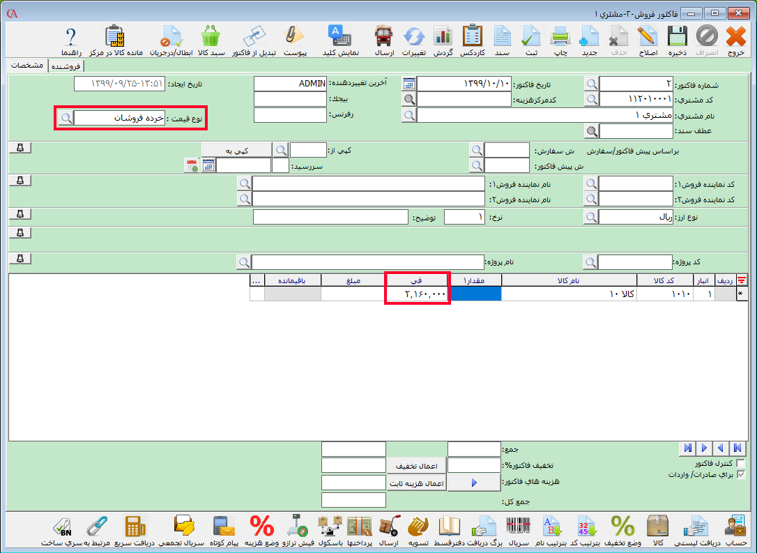 نکته: توجه داشته باشید که در قسمت نوع قیمت میتوانید نوع قیمت کالا ها را برای فاکتور جاری به صورت دستی تغییر دهید.