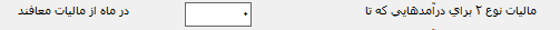 مالیات نوع 2: این نوع مالیات برای درآمدهایی که تا یک مبلغ ثابت در ماه از مالیات معاف هستند، کاربرد دارد. (کسر صندوق صندوقدار)