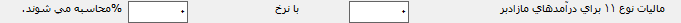 مالیات نوع 11: این نوع مالیات برای درآمدهایی که مالیات آنها مازاد بر یک مبلغ ثابت با یک نرخ ثابت محاسبه میشود، کاربرد دارد.