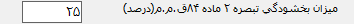 میزان بخشودگی تبصره 2 ماده 84ق.م.م(درصد): میزان بخشودگی تبصره 2 ماده 84ق.م.م را در این بخش وارد کنید.