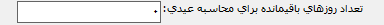 تعداد روزهای باقیمانده برای محاسبه عیدی: در صورتی که پیش از محاسبه حقوق اسفند ماه، قصد محاسبه عیدی کارکنان را داشته باشید، لازم است که تعداد روزهای باقیمانده سال را در این بخش وارد نمایید.