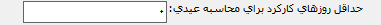 حداقل روزهای کارکرد برای محاسبه عیدی: در صورتی که بخواهید برای محاسبه عیدی و پاداش حداقل روز کارکرد در نظر بگیرید، در این قسمت تعداد روز مورد نظر را وارد کنید.