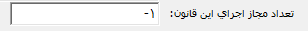 تعداد مجاز اجرای این قانون: چنانچه بخواهید برای استفاده از این قانون در فاکتورها محدودیت تعیین کنید، در این قسمت تعداد فاکتور مورد نظر را وارد کنید. به عنوان پیش فرض در این قسمت عدد 1- قرار داده شده است که در این صورت قانون به صورت نامحدود روی فاکتورها اعمال میگردد.