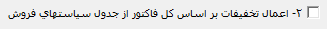 2- اعمال تخفیفات بر اساس کل فاکتور از جدول سیاستهای فروش: با فعال بودن این پارامتر، قوانین تخفیف تعریف شده بر اساس کل فاکتور اعمال میشود.
