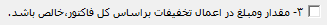 3- مقدار و مبلغ در اعمال تخفیفات براساس کل فاکتور، خالص باشد: در مدیریت تخفیفات، چنانچه بخواهید سیستم در محاسبه مبلغ فروش و مقدار فروش تا کنون، مبالغ و مقادیر مرجوعی را هم در نظر بگیرد، لازم است که تیک مربوط به این پارامتر فعال باشد.