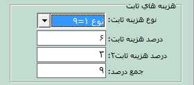 در قسمت هزینه ثابت، میتوانید نوع هزینه ثابتی (ارزش افزوده) که کالای شما از آن استفاده میکند را انتخاب نمایید. به طور پیشفرض این هزینه دارای 4 نوع است که این درصدها از منوی اطلاعات پایه، تعریف پیشفرضها، هزینه ثابت قابل تنظیم است.