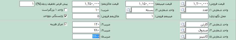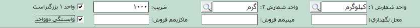 نکته: در صورتی که واحد 1 از واحد دو بزرگتر باشد گزينه واحد 1 بزرگتر است را فعال کنيد برای مثال در صورتی که واحد شمارش 1 کالا، کيلوگرم باشد و واحد شمارش 2 کالا، گرم اين گزينه را فعال کنيد.