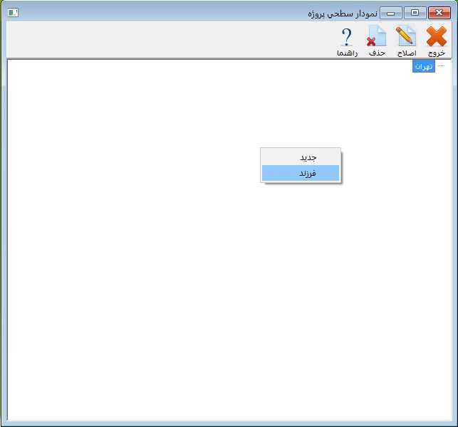 در فرم باز شده میتوانید سطوح مربوط به پروژهها را مشاهده نمایید. برای تعریف پروژه جدید در فرم نمودار سطحی، کلیک راست کنید و گزینه جدید را انتخاب کنید.
