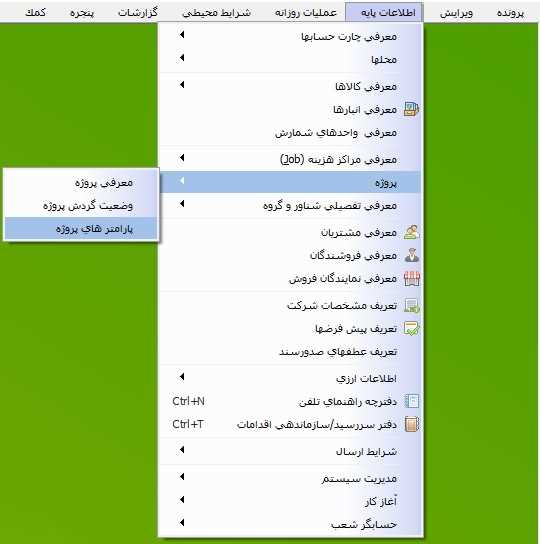 برای تعیین تنظیمات مربوط به این امکان از مسیر اطلاعات پایه > پروژه > پارامترهای پروژه را انتخاب کنید.