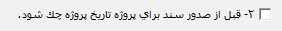 در صورت فعال بودن پارامتر "قبل از صدور سند برای پروژه تاریخ پروژه چک شود" چنانچه تاریخ سند از تاریخ انقضا پروژه بزرگتر باشد سیستم امکان صدور سند را نمیدهد. ![]()