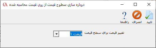 در فرم باز شده سطح قیمت مورد نظر را از لیست کشویی سطوح قیمت انتخاب سپس بر روی دکمه تایید کلیک کنید.
