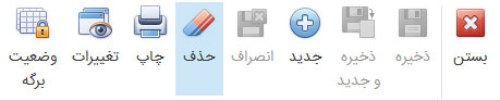 برای حذف برگه پرداخت در بالا فرم بر روی دکمه حذف کلیک کنید تا برگه انتخاب شده حذف شود.
