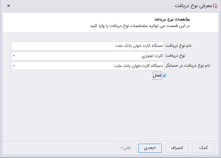برای فعال یا غیر فعال کردن نوع دریافت تعریف شده میتوانید تیک پارامتر "فعال" را تنظیم نمایید.