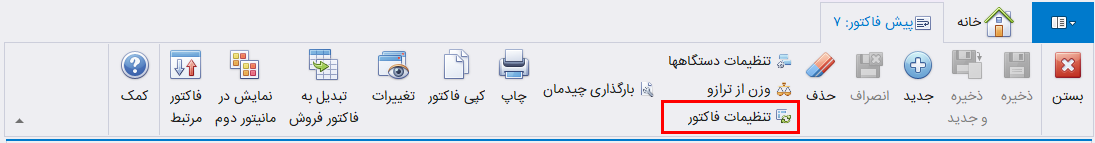 با استفاده از دکمه تنظیمات فاکتور میتوانید، تنظیمات مرتبط با فاکتور را انجام دهید.
