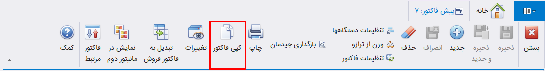 در صورتی که بخواهید پیش فاکتور جاری را در یک پیش فاکتور جدید کپی کنید با کلیک بر روی دکمه کپی فاکتور میتوانید یک پیش فاکتور جدید مانند پیش فاکتور جاری ایجاد کنید.