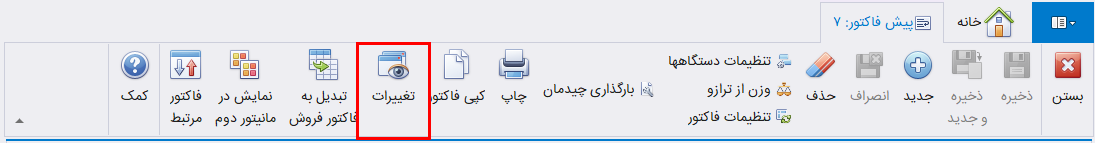 با استفاده از دکمه تغییرات میتوانید، تغییرات انجام شده روی پیش فاکتور را مشاهده کنید.