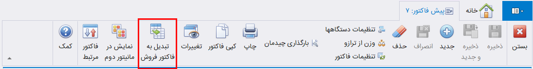 در صورتی که پیش فاکتور به فاکتور فروش تبدیل شده باشد، بعد از تبدیل با استفاده از دکمه فاکتور مرتبط میتوانید فاکتور مرتبط به پیش فاکتور را مشاهده نمایید.