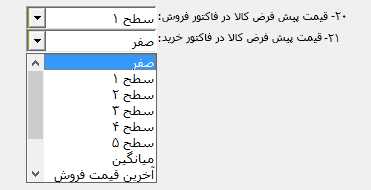 نکته : نرم افزار حسابگر از سطوح قيمت تعیین شده در این بخش در صدور فاکتورها، به طور اتوماتيک استفاده میکند. قيمت پيشفرض در فاکتورها از منوی شرايط محيطی > پارامترهای خريد و فروش پارامترهای شماره 20 و 21 قابل انتخاب است.