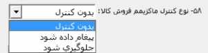 در قسمت قيمت مينيمم و ماکزيمم میتوانید کمترین و بیشترین قیمت فروش کالا را وارد کنید. برای تعیین نحوه عملکرد سیستم در هنگام وارد کردن مبلغ خارج از محدوده تعیین شده از مسیر شرایط محیطی > پارامترهای خرید و فروش، پارامترهای 11 و 12 قابل تنظیم است.
