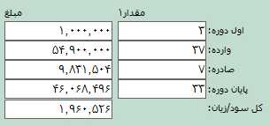 در قسمت اول دوره، مقدار اول دوره کالا نمايش داده میشود. در قسمت وارده مقدار کالاهای وارد شده و در قسمت صادره، مقدار کالاهای صادر شده در سیستم نمایش داده میشود و در قسمت پايان دوره، مانده مقداری كالا در زمان تهیه گزارش نمايش داده میشود.