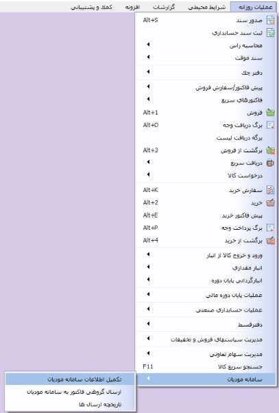 ۹-عدم نمایش منوی سامانه مودیان در قسمت عملیات روزانه